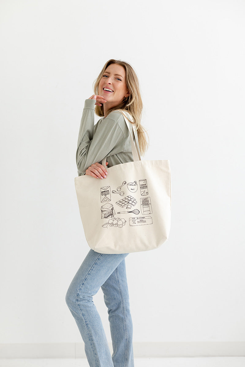 - We’ve put all the ingredients for homemade brownies onto a tote, and we’re kind of stoked about it. From walking around town, going to the beach, or getting groceries, this versatile (and adorable) tote can handle it all. Made from a soft cotton canvas material and with extra long handles, get ready for this to be your go-to bag